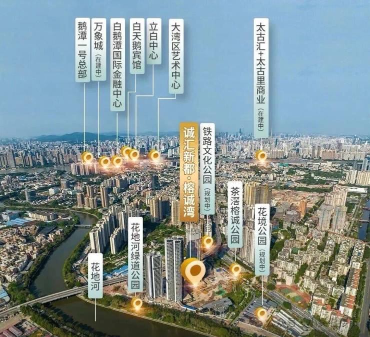 如果是自驾的话,周边有茶滘路、花蕾路、芳村大道等干线,去老荔湾、越秀、海珠西等地还算方便,而且花海路(榕诚湾段)也正式接驳浣花西路,从榕诚湾出发,轻松实现一路通达花地大道等主干道,无论是去往白鹅潭万象城、太古商业,还是通达其他核心商务区,都相当便捷。