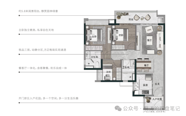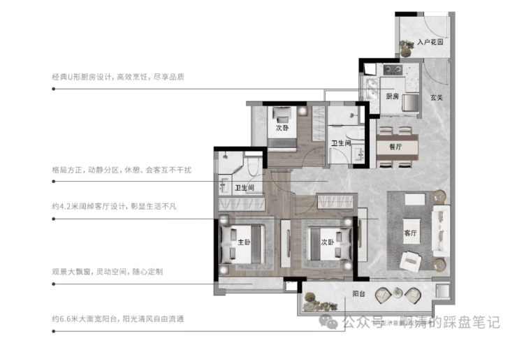 户型空间可实现大面宽大阳台,让生活充满阳光