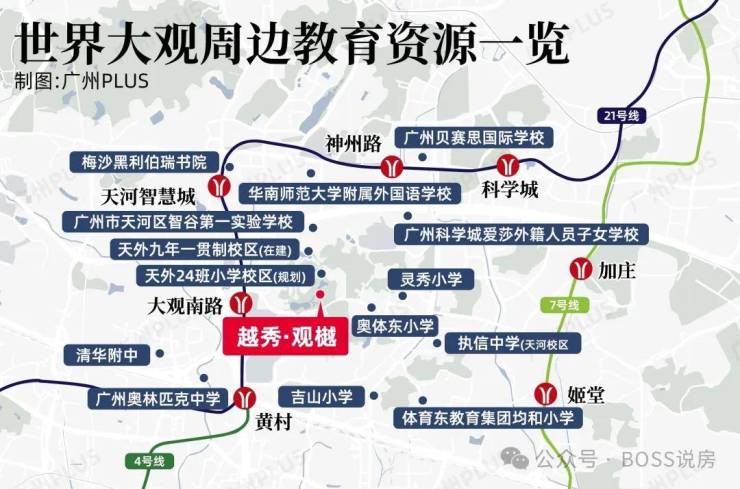 小学:配建 24 班小学,引进广州天河外国语教育集团合作办学,周边 3km 内有 15 个小学,包括奥体东小学、广州思源学校小学部等。