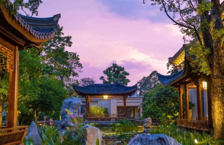 项目的园林,在延续星河湾风格的基础上,结合萝峰古村建筑特色,打造了别出心裁的水系园林,亭台廊榭、移步换景、古香古色,颇有江南园林风韵。