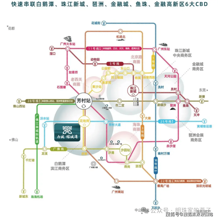 地铁:项目直距1公里范围内,1号线花地湾站、25号线汾水站(规划)双地铁环绕,畅达海珠、越秀;