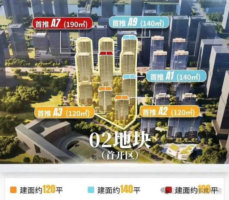 02地块规划了3个面积段,120-140-190平,都是南北对流双阳台四房。