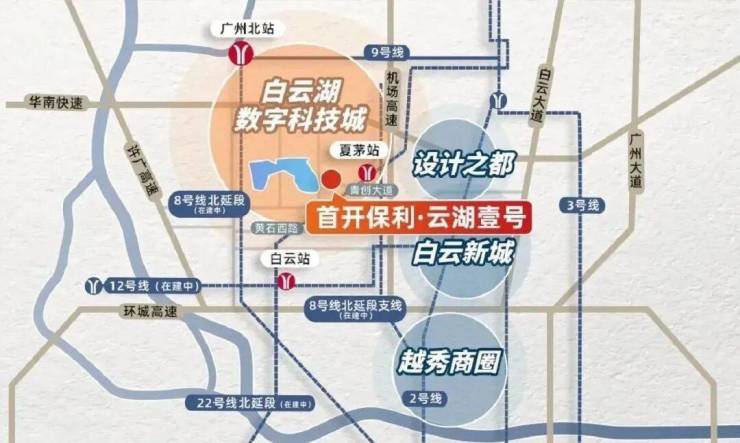 首开保利云湖壹号项目地处白云湖数字科技城东部,紧邻白云站CBD跟设计之都商圈。