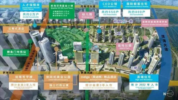 自带8万平㎡商业,已确定引入华润运营,预计作为“万象前海二期”的目标去打造,周边商业氛围浓厚,已开设的有万象前海、卓悦INTOWN、山姆旗舰店等品牌商业,而即将开业的有前海壹方汇和前海K11,后续紧跟的还有交通枢纽的约19万㎡大型商业区。