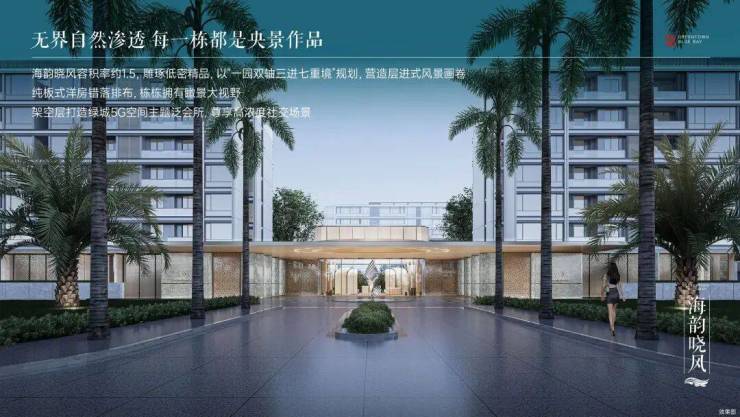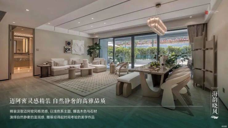 海韵晓风定位为“创新度假洋房”,容积率约1.5,距离沙滩约700米,融合无界自然与迈阿密风格精装,打造松弛感滨海生活。