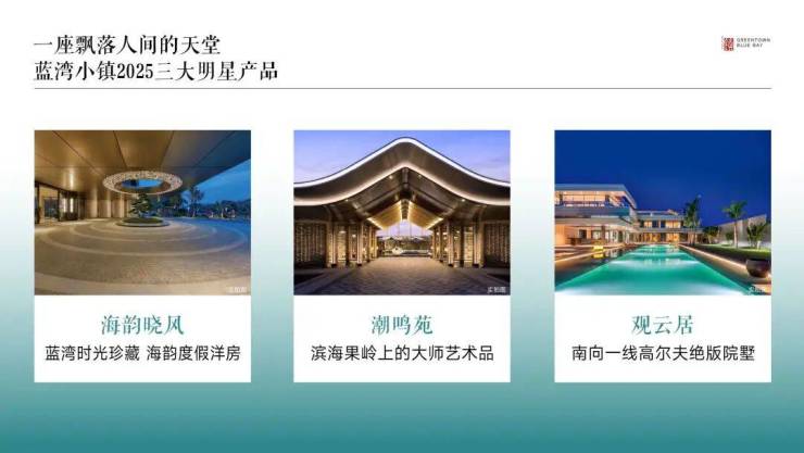 海南绿城蓝湾小镇以“低密度假美学”为核心,通过4800亩土地的精密规划,形成建筑与自然交融的格局。海南绿城蓝湾小镇的产品线覆盖从刚需小高层到顶奢大平层、叠墅、别墅等全产品线,结合滨海资源与高端配套,满足不同客群的度假、养老、旅居需求。2025年,绿城蓝湾小镇推出三大高端旅居产品——潮鸣苑、海韵晓风、观云居,以创新设计重新书写滨海度假美学标准。