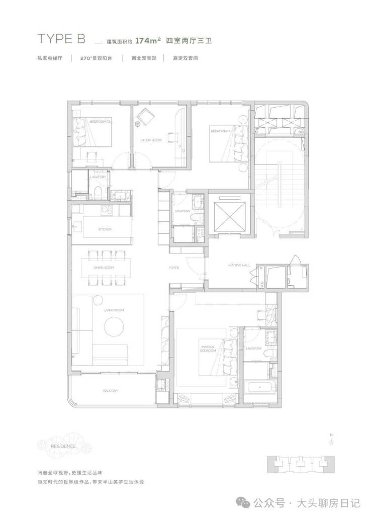 【174㎡户型】独享私家电梯厅-270度环幕观景阳台-高定双套间