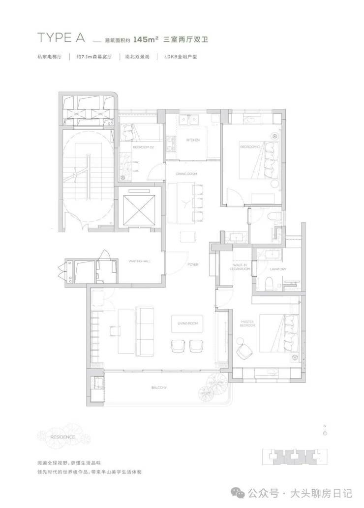 【145㎡户型】独享私家电梯厅-约7.2m²森幕宽厅-LDKB全明户型