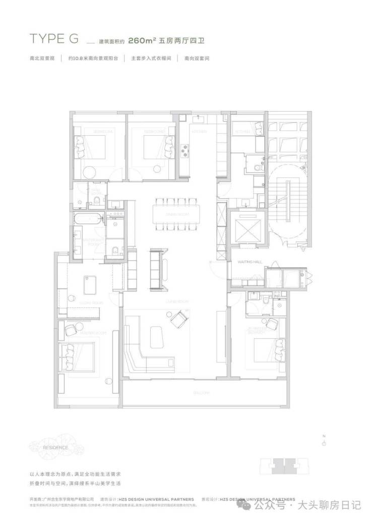 【260㎡户型】超10米南向景观阳台-南北双景观-主套步入式衣帽间-独创灵动岛设计,生活场景多重切换