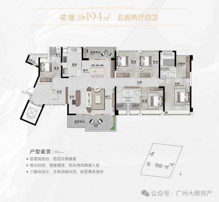 【194㎡五房2厅4卫(三套房)】南北对流双景观阳台,观景生活两不误