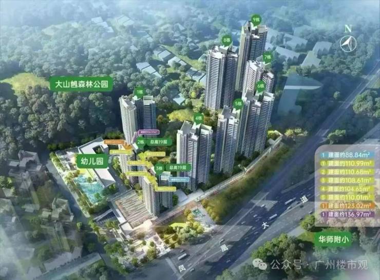 项目主打的卖点是4号线地铁约800米,星河cocopark约400米,楼下自带幼儿园和托儿所,华师附小就在对面(目前步行绕路约1公里),环境更是没得说靠着大山乸森林公园而建,看着蕉门河,背山望水,更绝的是19层高,89平做南北对流4房(使用率128%)