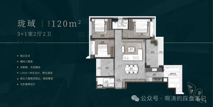 南北对流双阳台,南向阳台长约7.5米!搭配LDKG一体化,突破空间局限,拓宽了娱乐、互动、社交等多维场景。