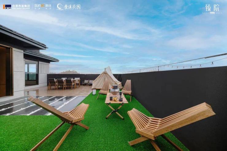 约43-54㎡顶层露台,根据主人爱好,打造楼顶的莫奈花园、搭建户外烧烤棚、星光露台等,有空可邀约三五知己,在露台上啤酒烧烤、品酒品茶、麻将扑克、聊聊人生等,一边欣赏无边的美景,一边享受顶层露台带来的生活意趣