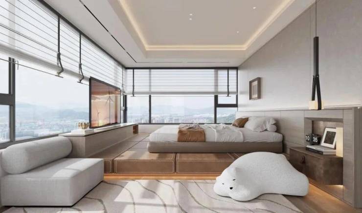 全屋次卧尺度宜人,落地飘窗给予空间更大灵活度,三代家庭成员各自有天地。