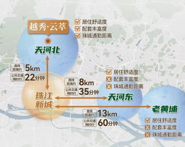 地段上差距更显悬殊,对比天河东、老黄埔,它更近距珠江新城CBD,聚焦更齐全国际顶级配套。