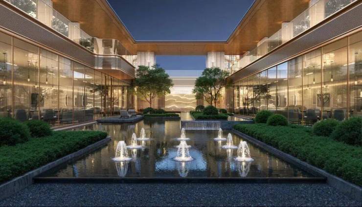 穿过大门,则是约1.3万㎡中央大花园,打造一轴两环五核心的景观布局,与金山湖的树影生态遥相呼应;