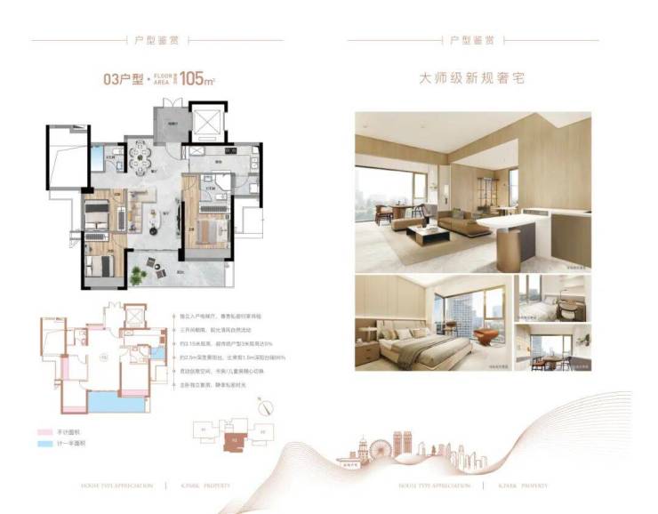 建面约105-123㎡高层产品,媲美市面约150-160㎡大平层实用率的新标准,更以细化的尺度设计,落地到每一寸空间的舒适营造。
