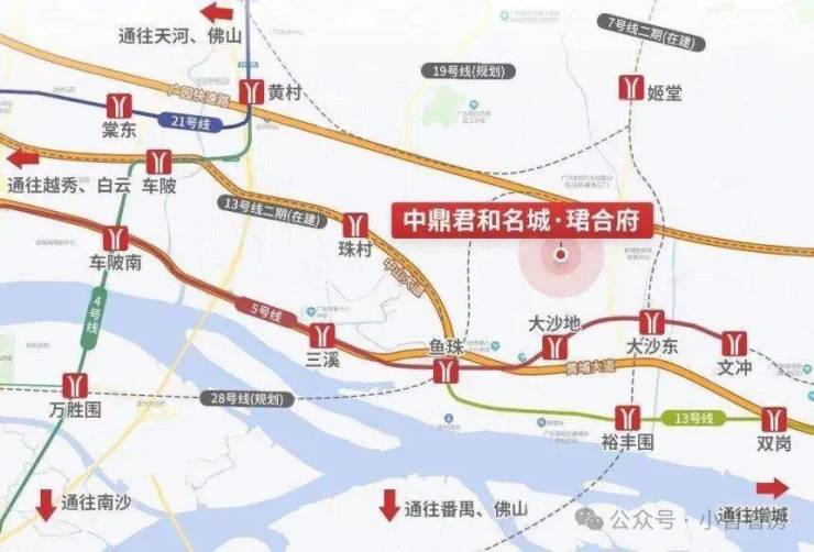 交通出行十分便捷,项目距离地铁 5 号线大沙地站约 600 米,步行 8 分钟可达,乘坐地铁 2 站能到天河,5 站直达珠江新城,未来还能换乘 7 号线二期和 13 号线。