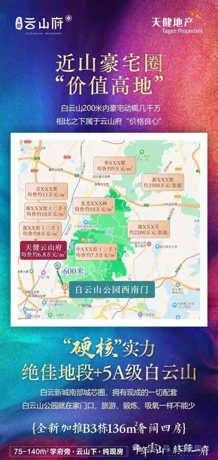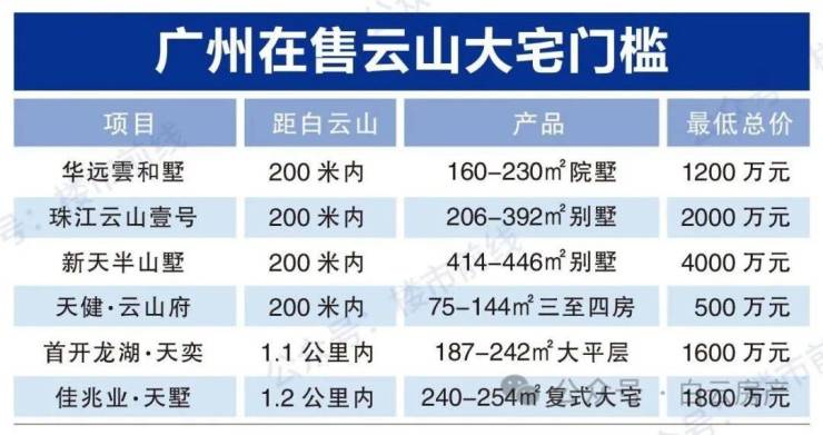 距白云山200米内的洋房仅天健云山府,其它都是别墅产品