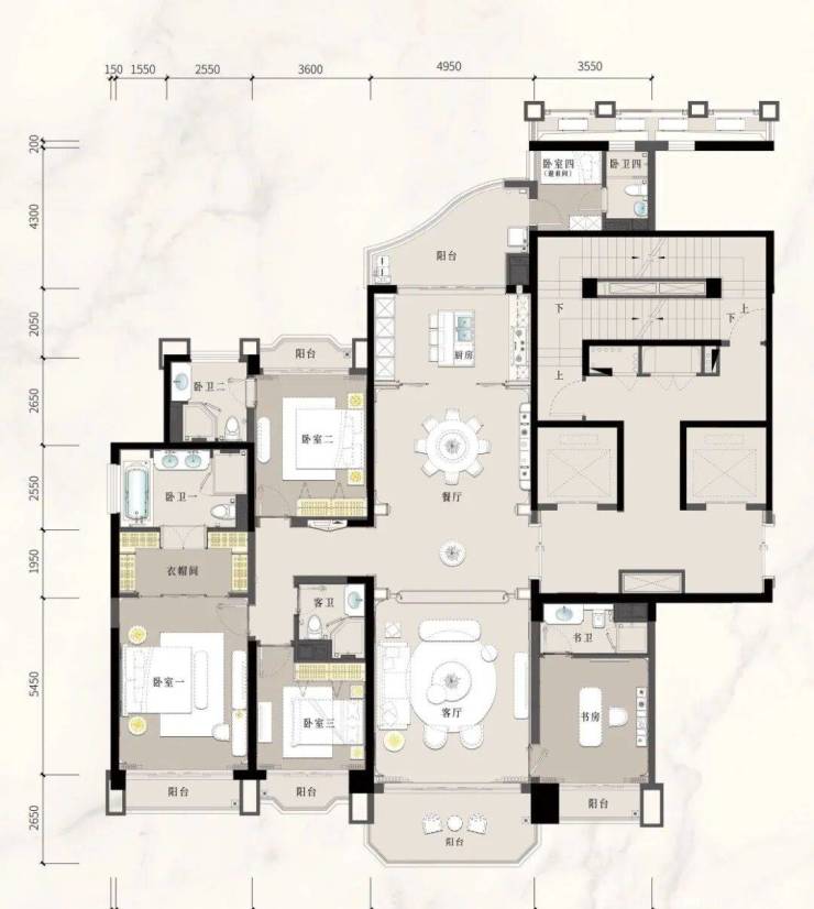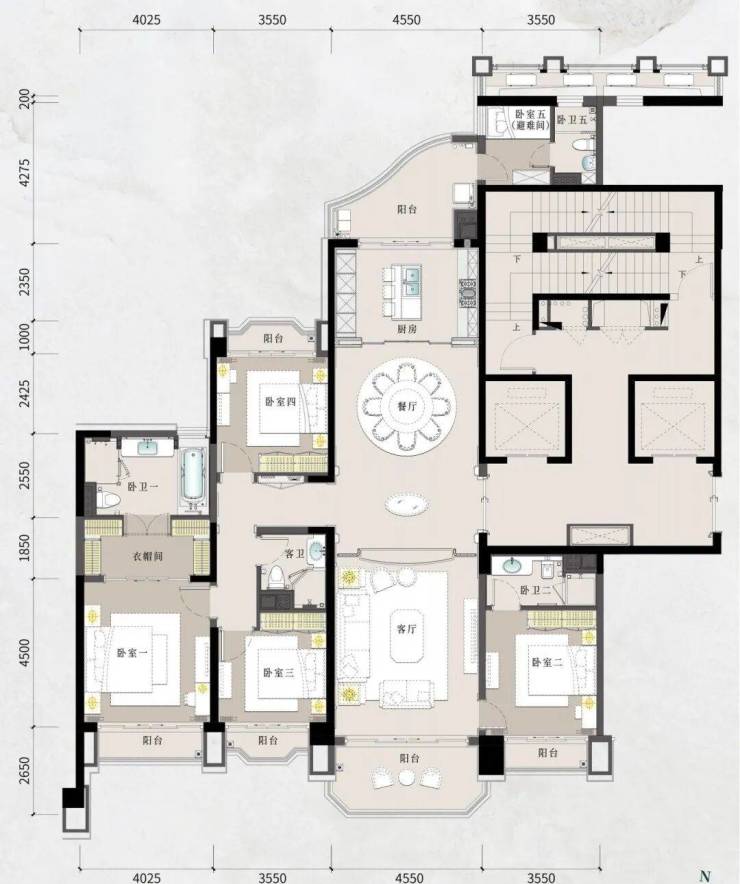 三、户型亮点:四房至五房大平层 空间利用率极高
