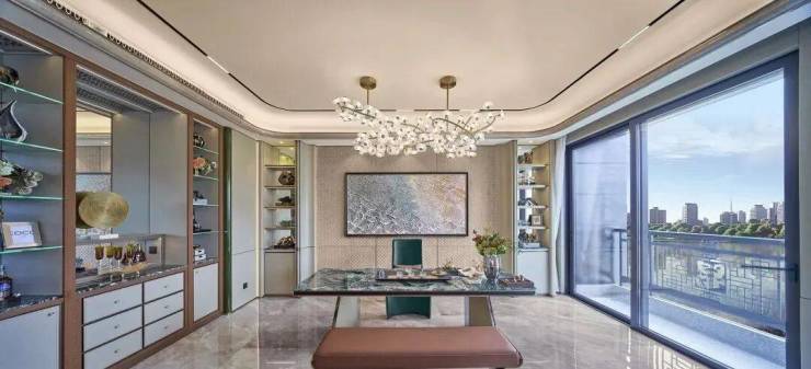 ——取意国画《千里江山图》中青绿色为基调与奢石、皮革与金属的简约搭配, 人文淡雅的生活主场