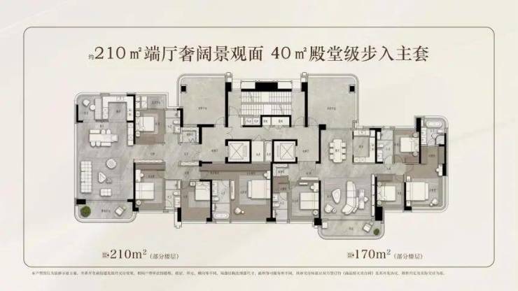 目前项目在售的户型涵盖 120㎡、140㎡、170㎡和 210㎡的四房单位,均为带装修交付。