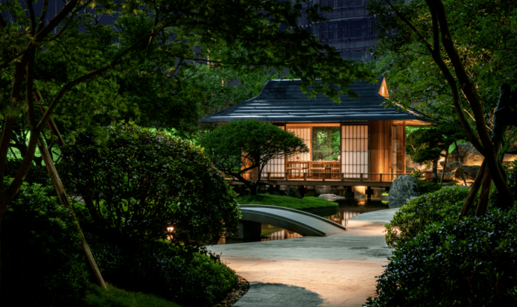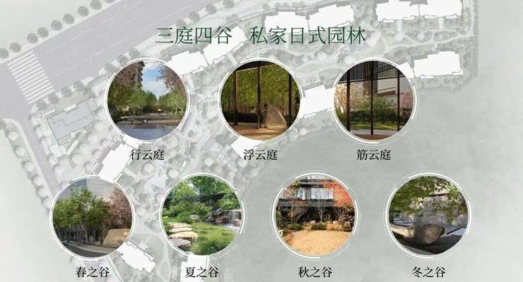 小区园林“四谷三庭”的空间布局,不像传统豪宅园林那样“扁平”,而是非常立体。在这里,项目借助砂、石、水、木等元素,营造山水庭院的禅意。搭配上樱花树等各种花期不同的树木,也算是把“四季”风景搬到小区楼下。