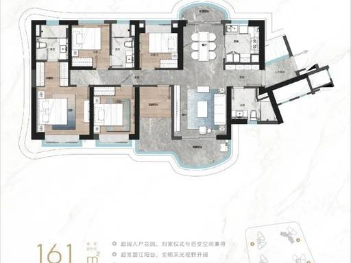 161-253㎡ 四至五房:楼王大平层,专梯入户、超大观景阳台、全明奢阔空间,直面珠江,终极改善首选。