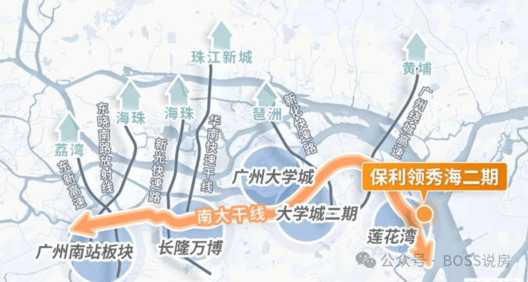 能快速到达广州南站、番禺万博、广州大学城,琶洲会展等区域,另外附近还有新化快速、广州绕城高速等;