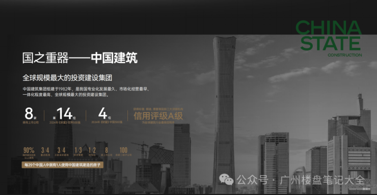 ④世界500强TOP13 纯血央企 超强品质兑现力中国建筑,世界500强排名第13强❗ 我国建筑领域唯一一家由中央直接管理的国有企业,建筑领域全球第一。在中国,平均每25个人,就有1个住在中国建筑建造的房子里。