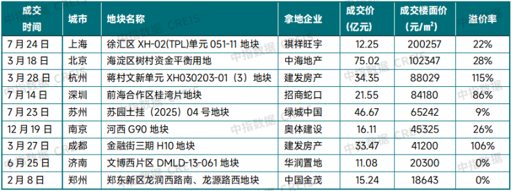 注:统计地块口径为成交价超3亿元地块