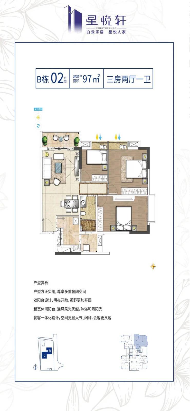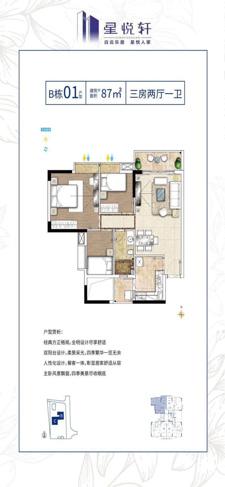 星悦轩约75-110㎡奢阔二至三房充考虑居住空间的功能性,产品格局方正,动线合理,充足采光,以懂生活的房子臻藏美好时光。