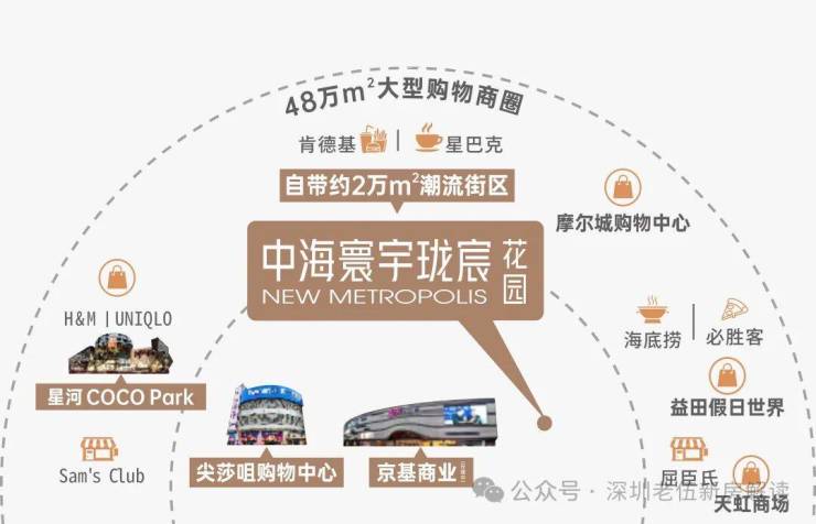 地铁三站到大运,可达星河COCO Park;一杯咖啡的时光,驾车轻松畅达摩尔城购物中心、万科里、万科广场等大型购物中心;约15分钟内潮流商圈任由选择,佳华沙湖旗舰店集中商业(在建中)、锦龙天虹商场、益田假日世界、京基24H开放式潮流商业街区(在建中)、尖莎咀购物中心等。
