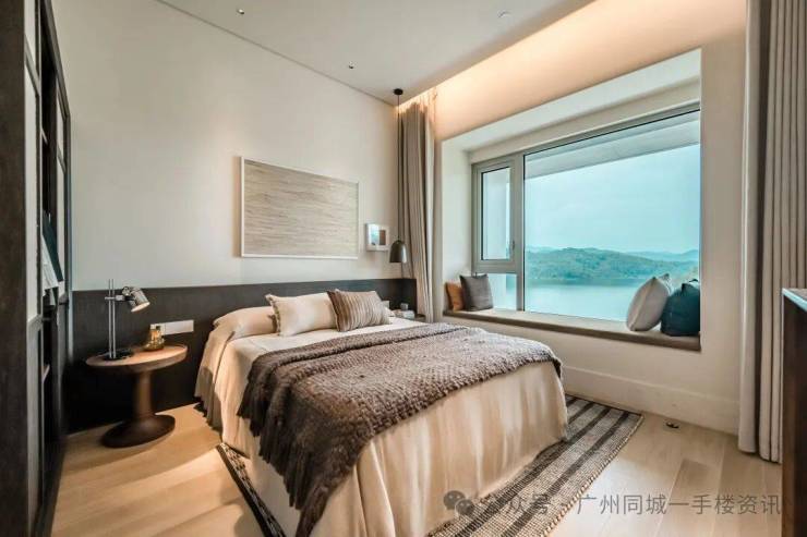 上庭下院设计,很有叠墅的感觉,还能望4A级的九龙湖头排湖景。240㎡户型板房,刚进二层客厅,壮丽的湖山画卷就在眼前铺开,在广州能把景区作为家中背景板的项目,确实没几个。