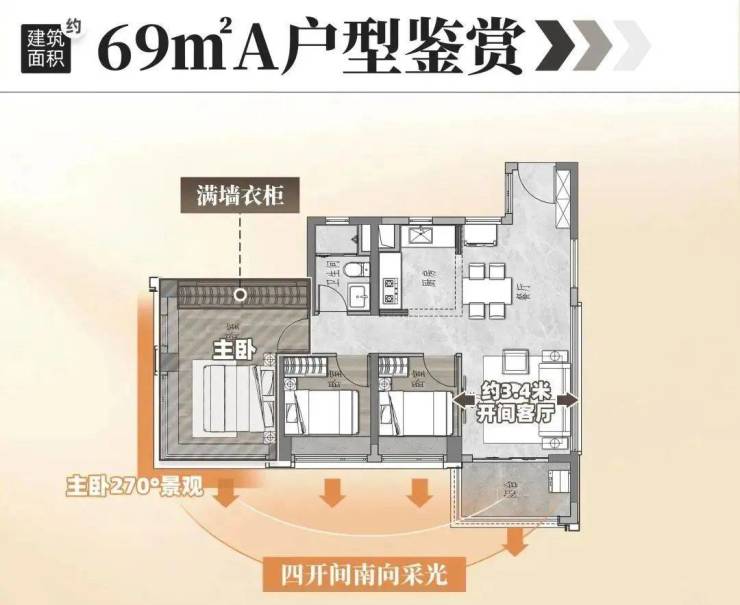 建面约69㎡户型,是广州西部稀缺的极小户型,也是总价最低的新规三房。