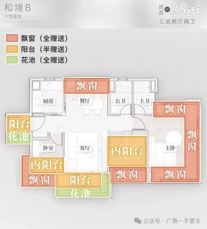 【户型面积】 68-85㎡三房