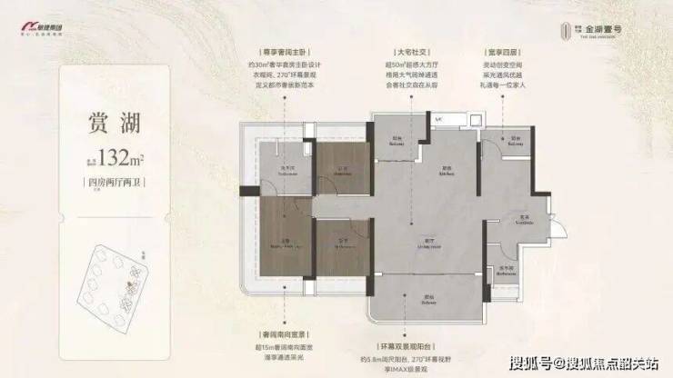 131-132㎡四房同样为全南向,部分户型能眺望湖景;