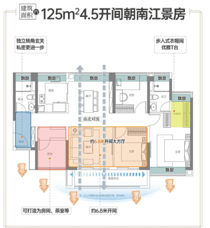越秀·江海潮鸣深谙当代高净值人群对空间尺度与生活仪式感的追求,在户型设计上精益求精。125㎡三房两厅两卫户型,采用LDK一体化布局,最大化公共区域通透感;主卧套房配备独立卫浴与步入式衣帽间,私密性与舒适度兼备。140㎡四房两厅两卫户型,则进一步放大社交空间,双阳台设计兼顾景观与功能,满足多代同堂或高端接待需求。