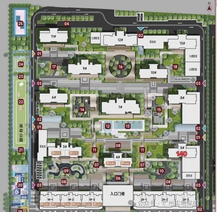 新中式园林景观,有650米风雨连廊,还有下沉式会所(含书吧、健身房、茶室等)、运动公园及4.5米层高架空层,休闲设施丰富。