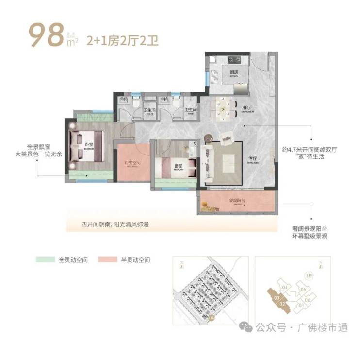 约4.7米开间阔绰双厅,环幕墅级园林景观,四开间朝南,阳光清风弥漫