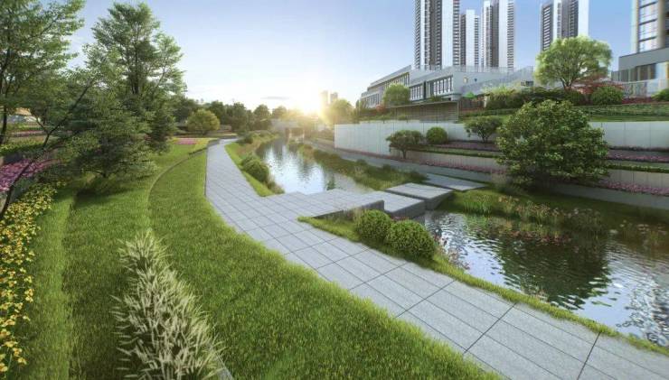 项目内部设置了约5000平的街心公园、紧挨着长约2.4公里,建面约15.66万平的梧桐山河碧道,周边还有五大公园,生态环境非常好,居住舒适度非常高。
