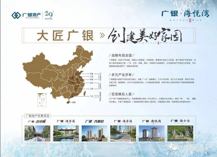 广银集团 1992 年成立于江西,现有员工1000余名,集房地产开发及建设、市政工程、贸易、能源再生,文化产业等六大领域的实业公司,目前集团旗下拥有八大全资子公司,五家合资公司。 至今已有二十九年的发展历程,深耕长三角版块、中部版块、粤港澳大湾区三大区域,房地产开发项目遍布江西、广东、江苏、安徽、湖北、河南等,布局超 20 市,开发超过 50 个项目 有着超过 10 万的业主量。中山广银海悦湾楼盘项目的开发商是江西广银实业集团有限公司(简称广银集团)。