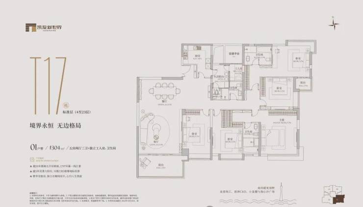 304㎡ 五房两厅三卫+独立工人房、卫生间
