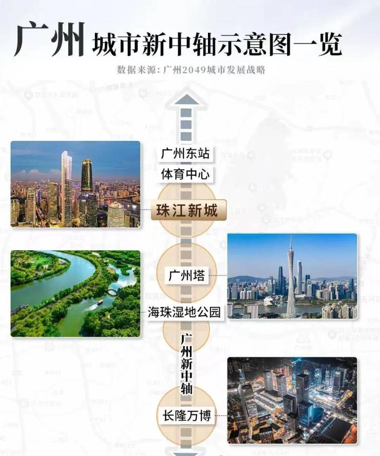 新中轴线的扩展与交通规划预示着广州未来发展回归中心,新中轴将强者恒强。《广州2049战略空间规划》广州新中轴线,北起燕岭公园,南至海珠区的南海心沙岛,贯穿火车东站、天河体育中心、珠江新城等。