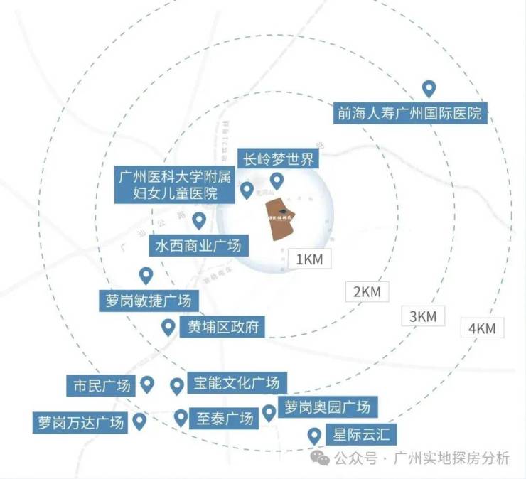 周边萝岗万达广场至泰广场、萝岗敏捷广场、约29万㎡敏捷科技创新综合体建设中、约8万㎡长岭梦世界建设中等。
