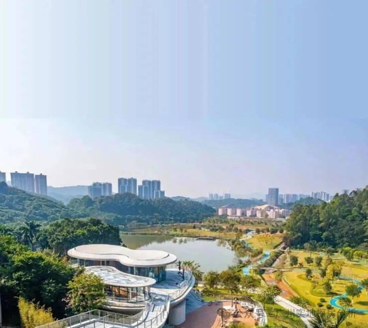 东南向望2.2万方的元贝中央生态公园。
