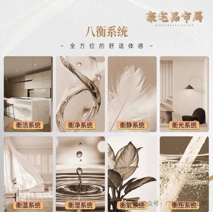 同时,玥玺湾围绕空气、水、声、光、温度、湿度、含氧量等指标,打造了一套服务于广州气候特色的「八衡系统」。