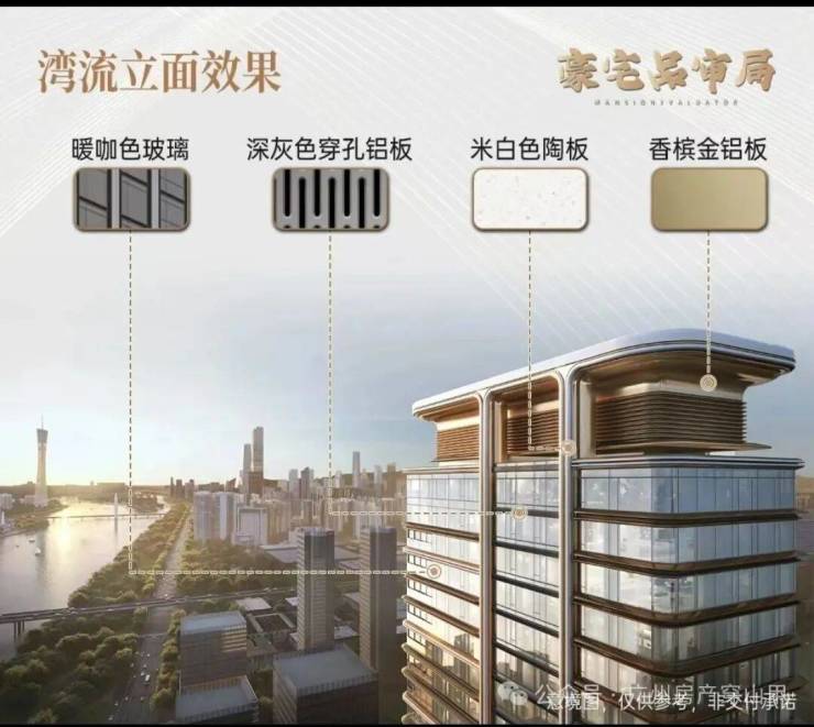 另外,临江大道项目,保利定调为“世界级滨江作品”、“独特的城市景观客厅”,这一点,从展示的效果图能看出来——超大玻璃幕墙、铝板线条装饰,第一感觉就是高端、大气、豪宅。