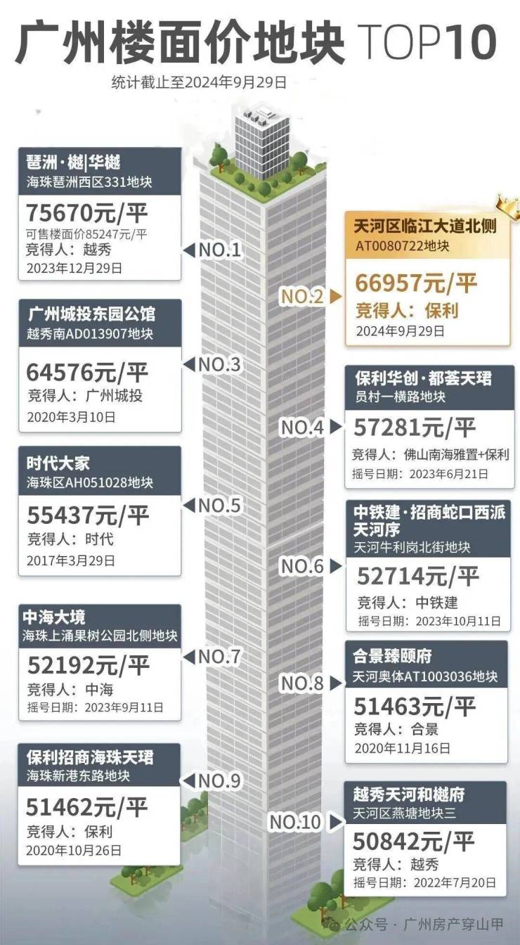 继地价榜第四的员村一横路地块(现保利华创都荟天珺)后,保利在珠江新城再下一城,顺手创造了天河地王。跻身广州楼面价TOP2,仅次于琶洲地王。