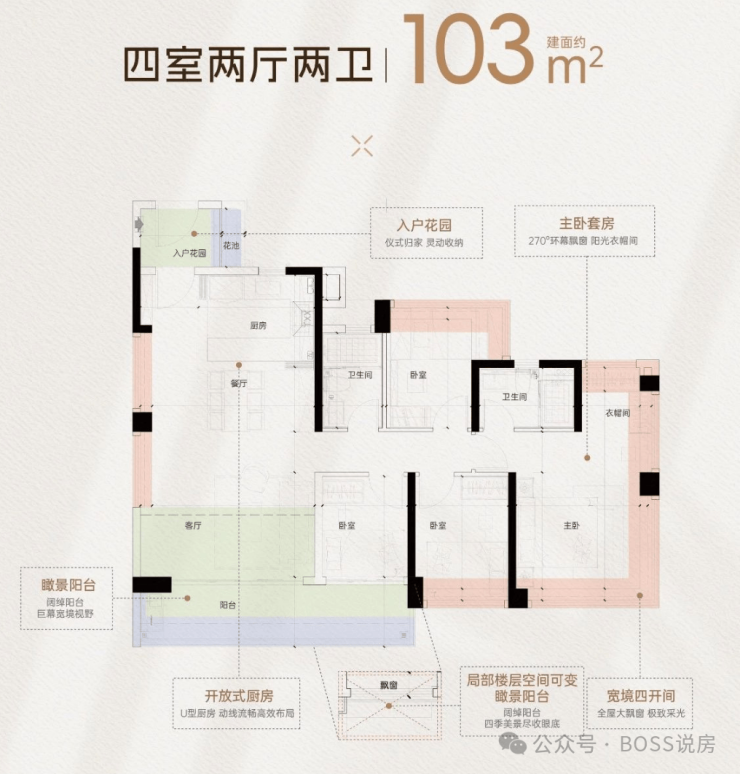 105㎡户型:南北对流大方厅,客厅面积可扩至23㎡,三代同堂无忧